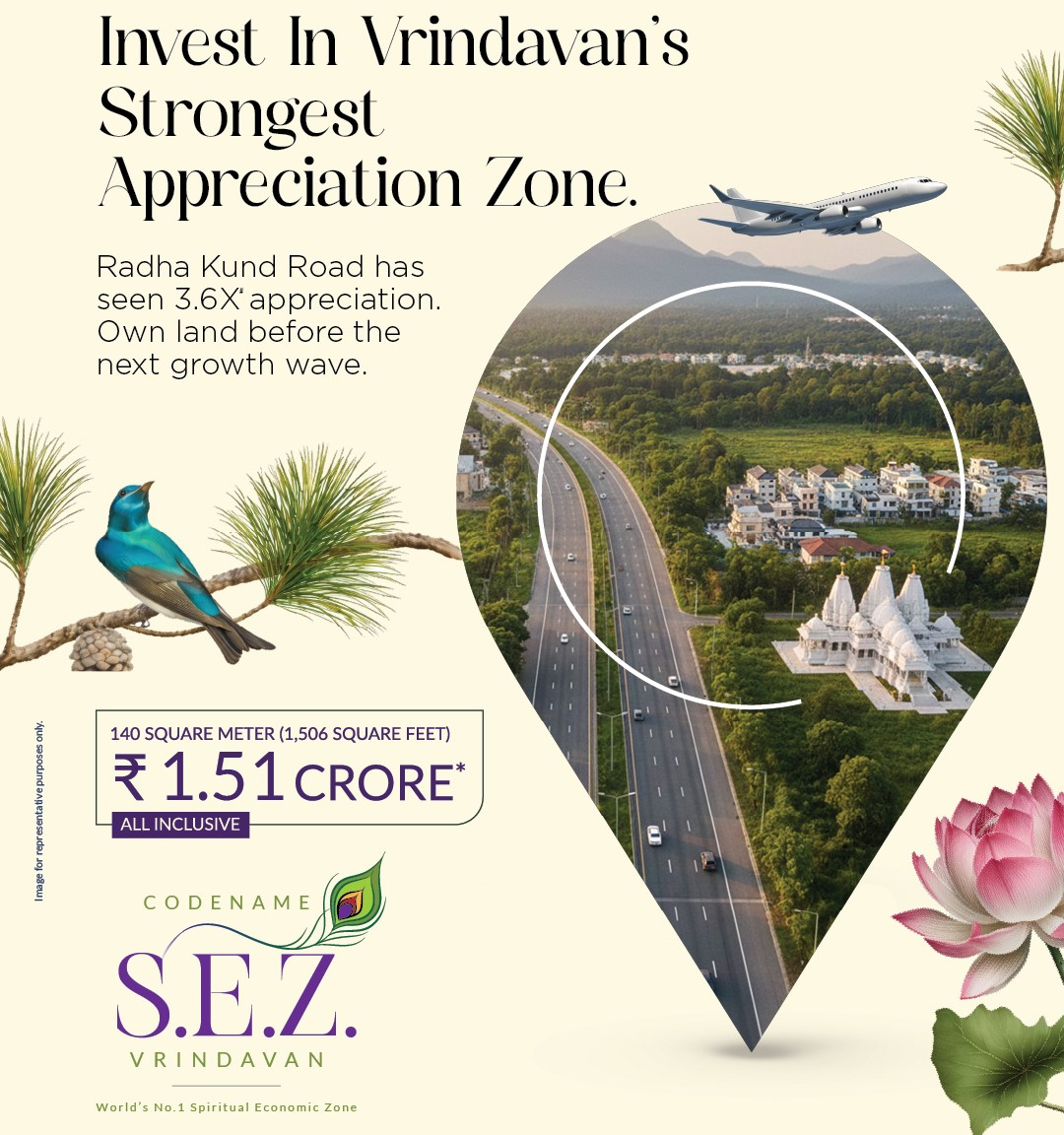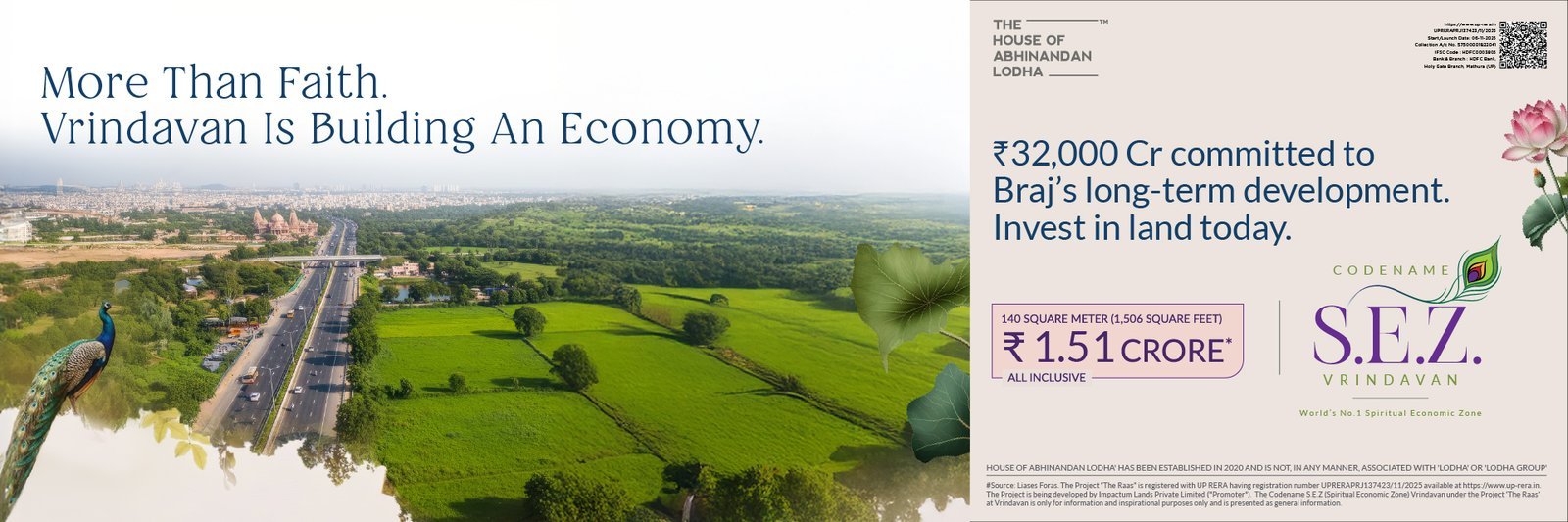 🕉️ Located in Vrindavan’s emerging spiritual micro-market with HOABL Land opportunities